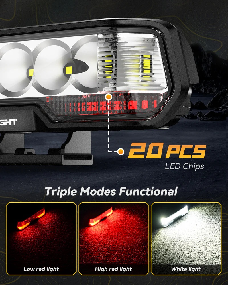 Enhance your driving safety with this 6” Dual-Color LED Reverse and Brake Light Bar. Designed with high-brightness flood beam technology, it provides clear visibility in low-light conditions. Available in Red/White and Yellow/White modes, this integrated light bar offers reliable performance, easy installation, and long-lasting durability for everyday and off-road use.
