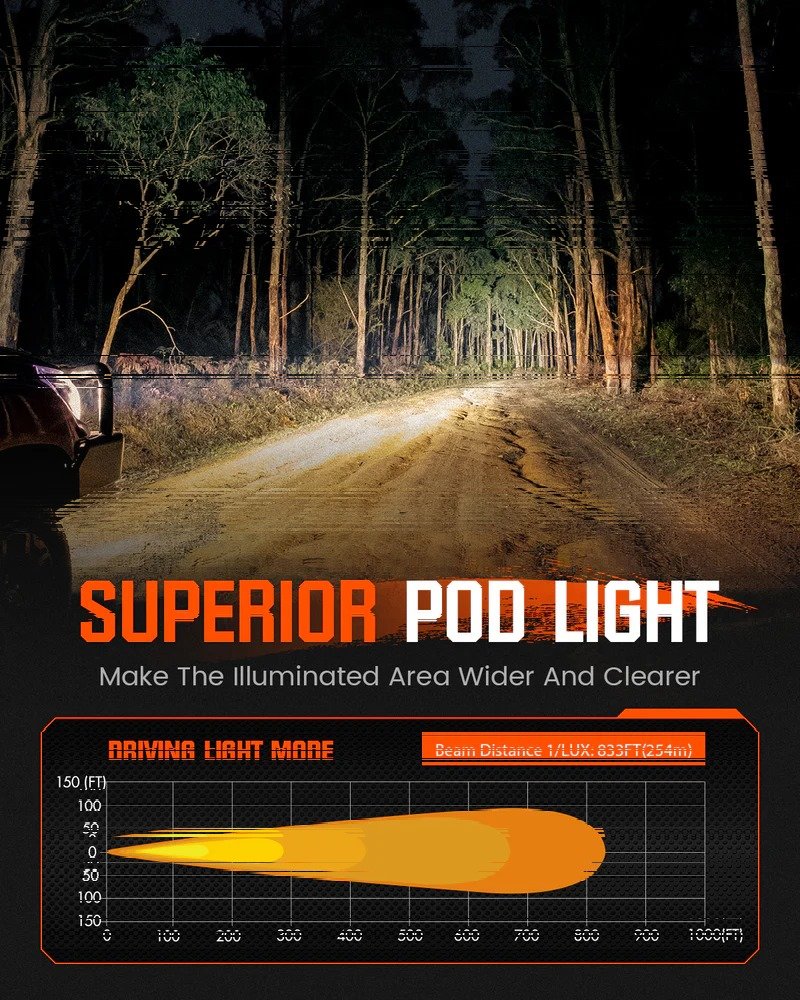 Novsight CYBER 1 Series Amber Cube LED Pod Lights are designed to provide clear and focused illumination in fog, rain, and dusty conditions. Featuring high-brightness amber LEDs and a durable waterproof housing, these auxiliary off-road lights are ideal for motorcycles, ATVs, and UTVs, delivering reliable performance and improved visibility on every ride.