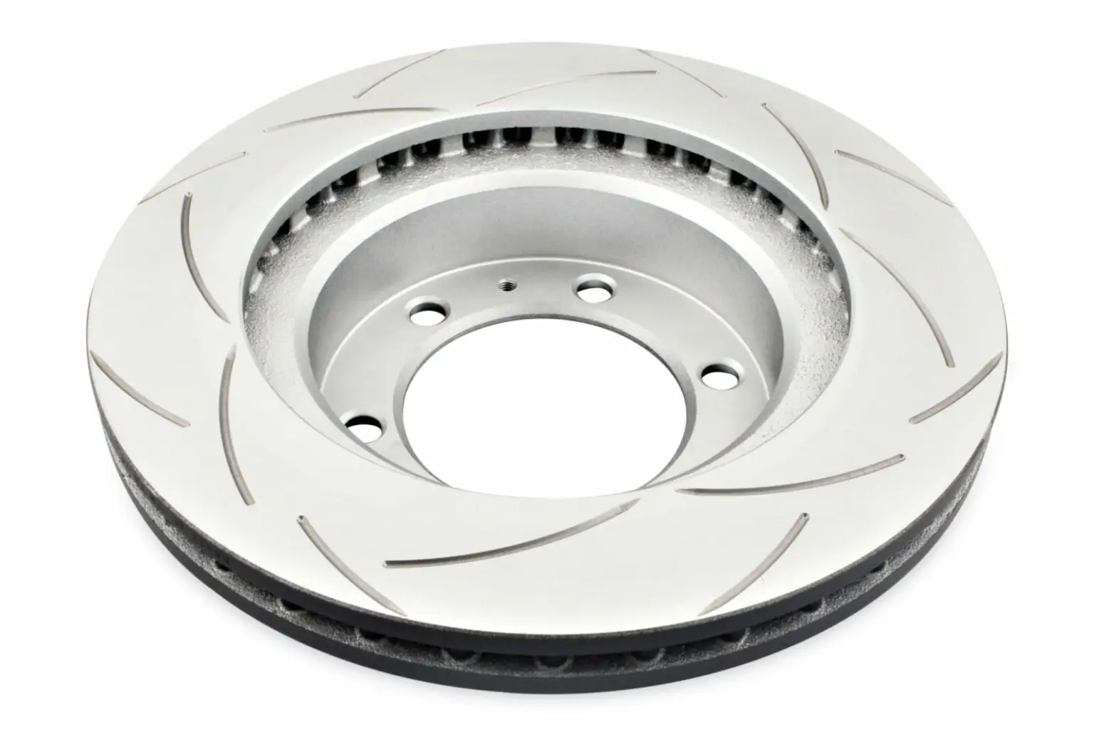 The Front Street Series T2 Brake Rotor is a direct OE replacement disc engineered for improved braking performance and durability. It features a patented T2 bi-symmetrical slot design, precisely CNC machined to enhance pad bite and ensure consistent braking response. The increased slot exit points allow efficient dispersal of friction dust, heat, and gases, reducing brake fade under demanding conditions. Manufactured with high-quality materials and advanced machining processes, it delivers optimized thermal stability and minimal disc thickness variation. Designed for front axle applications, it provides reliable, quiet, and responsive braking for daily driving and light performance use.