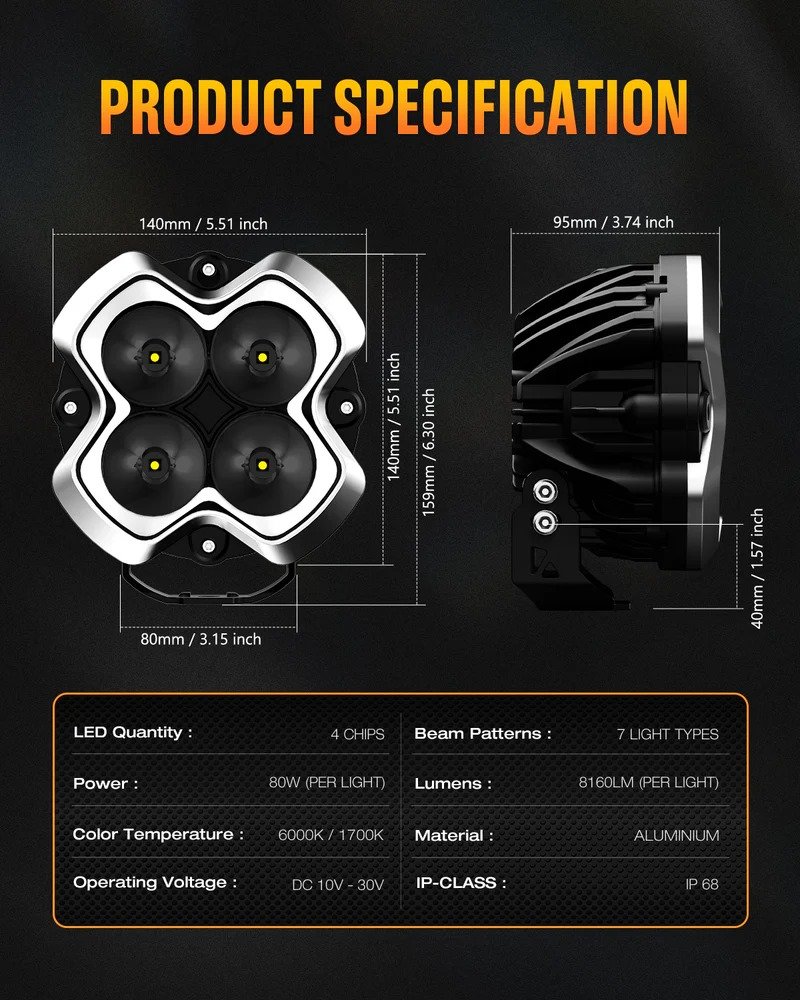 Novsight HALO Pro Series 6-Inch LED Pod Lights feature dynamic DRL modes and a combined beam pattern that delivers both wide and long-range illumination. Designed with a durable waterproof build and high-brightness LEDs, these auxiliary lights are perfect for motorcycles, ATVs, and UTVs, enhancing visibility, safety, and style for every off-road and night-driving adventure.